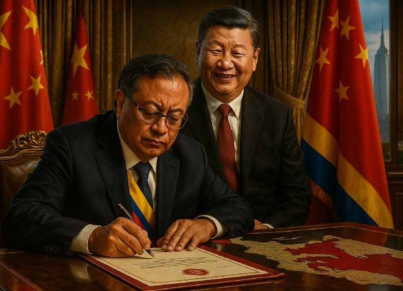 El presidente colombiano afianza su cercanía con el régimen de Xi Jinping, firmando acuerdos que comprometen el futuro financiero del país y tensan la histórica relación con Estados Unidos y Europa. (Foto: CHATGPT-IA)