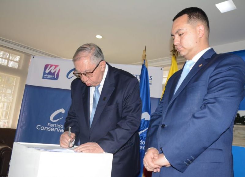 El coronel (r) Carlos Alfonso Velásquez formalizó su inscripción como precandidato presidencial por el Partido Conservador Colombiano. Vestido con traje y corbata azul, el ex militar acudió a la Secretaría Política de la colectividad para sellar el trámite, en un acto que marca el inicio de su camino hacia las elecciones 2026-2030.