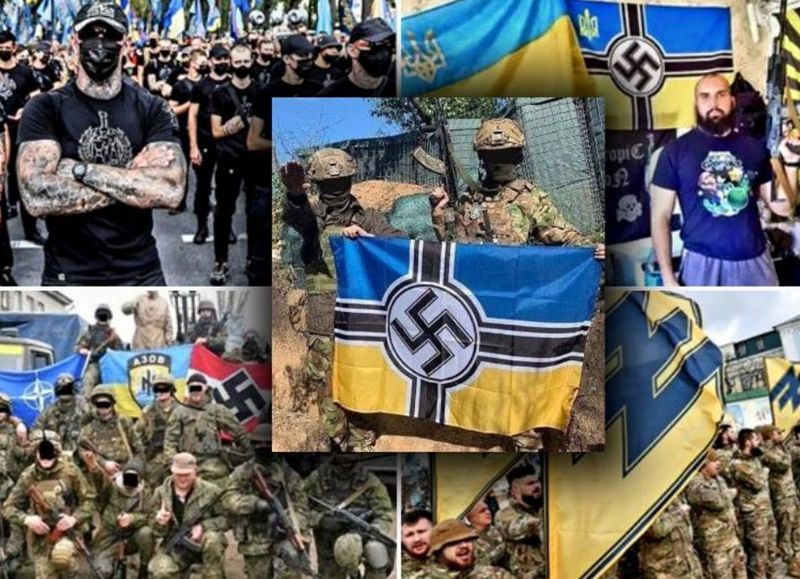Por ejemplo, las expresiones modernas del fascismo se pueden ver en la renovación de los neonazis Azov, C14, Svoboda y Aidar tatuados con la esvástica, amantes del sol negro del ocultismo y vestidos de lobosangel hoy en Ucrania, además de una reescritura completa de la historia de la Segunda Guerra Mundial que se ha sumergido aceleradamente en la irrealidad durante los 30 años desde que colapsó la Unión Soviética.